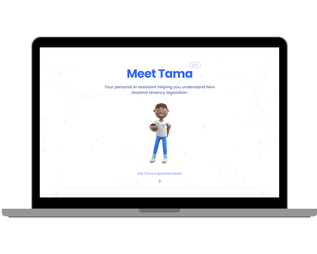 Tama in an AI bot equipped with LLMs (Large Language Models) and an extensive knowledge-base compiled by NZ tenancy and privacy law experts.